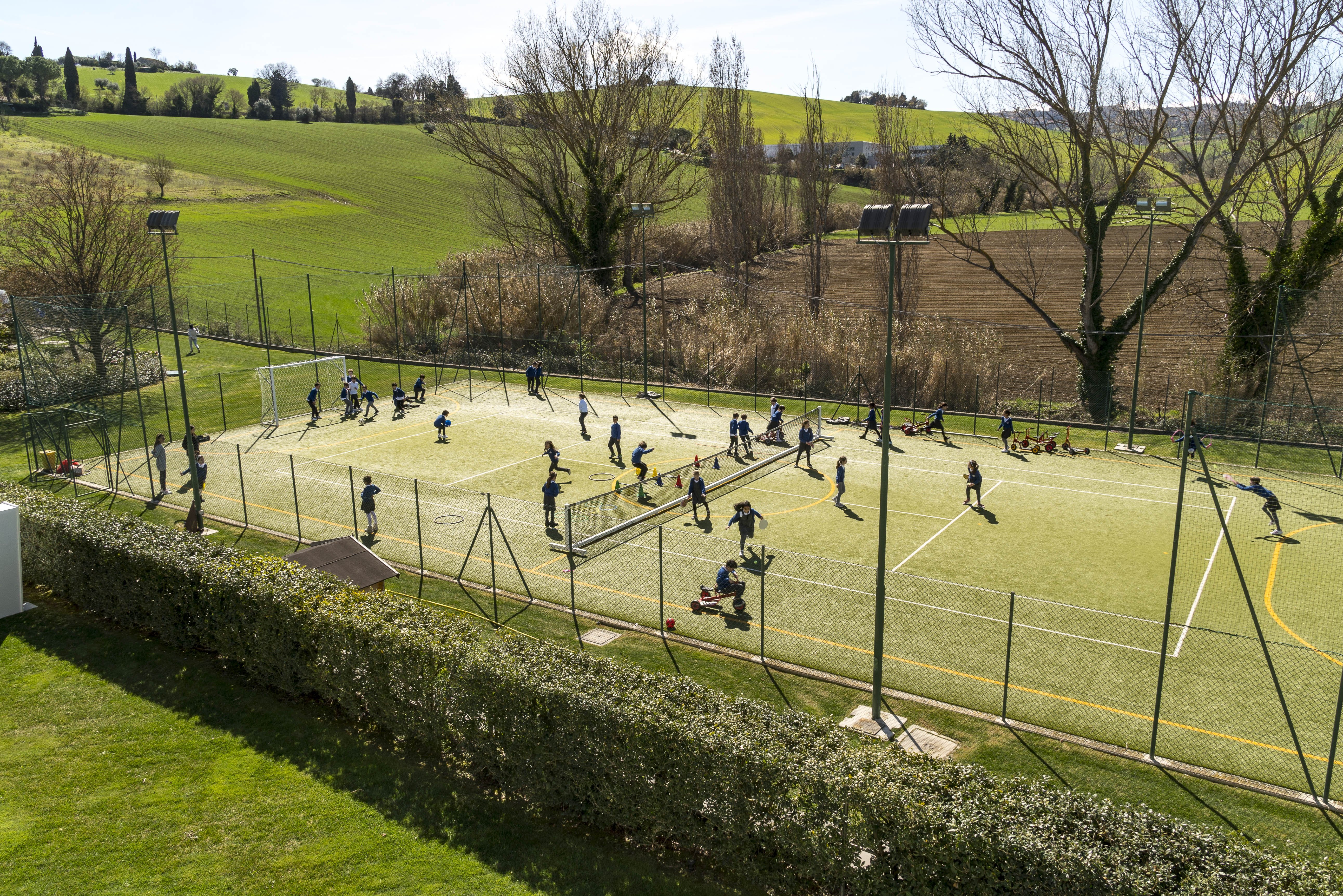 La nostra struttura è immersa nel verde, abbracciando una superficie di 4000 mq. Ampi giardini, un auditorium, laboratori all’aperto e una palestra attrezzata ad uso esclusivo degli studenti contribuiscono a promuovere un'esperienza educativa all'aria aperta.